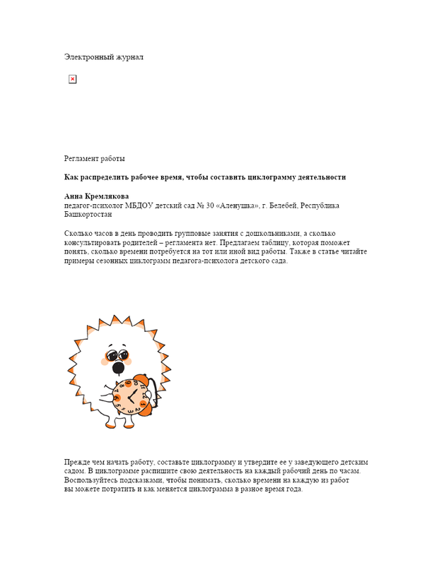 Циклограмма Психолога