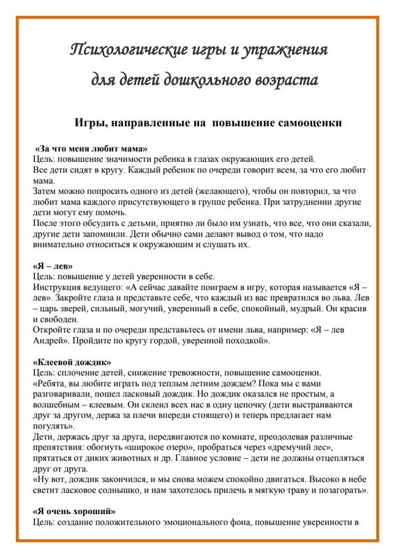 Психологические Игры И Упражнения Для Дошкольников