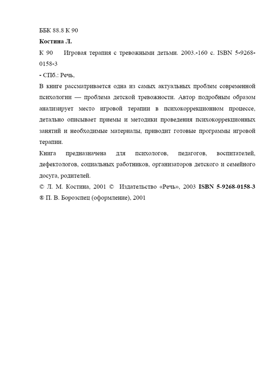 Kostina L Igrovaya Terapia S Trevozhnymi Detmi