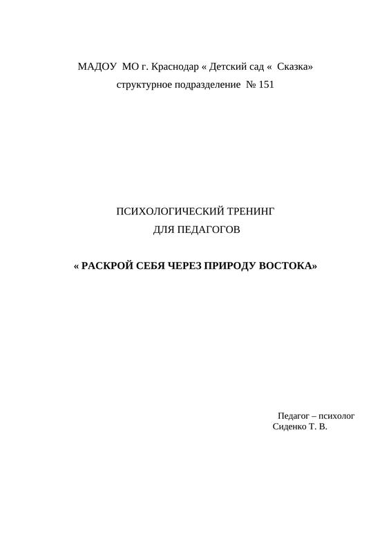 Тренинг Для Педагогов Раскрой Себя Через Природу Востока