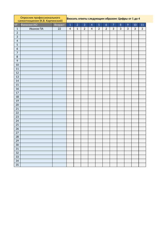 Опросник Профессионального Самоотношения (К.В. Карпинский)