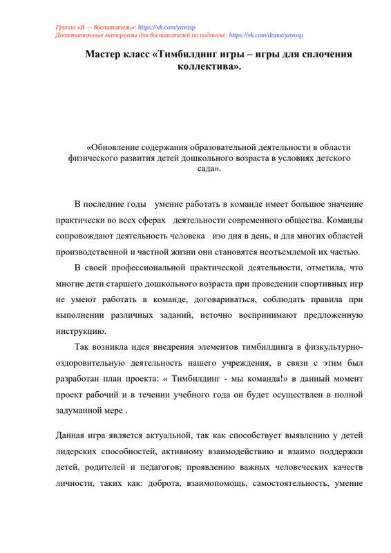 Мастер Класс «Тимбилдинг Игры – Игры Для Сплочения Коллектива»