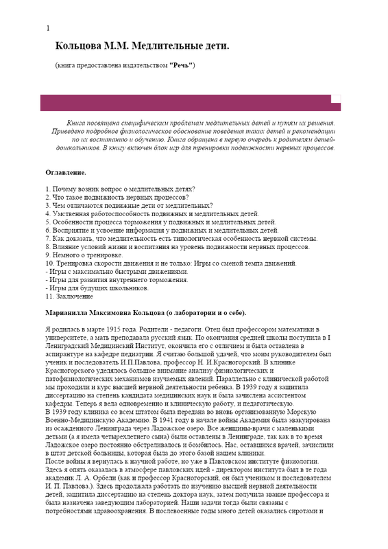 Koltsova M M Medlitelnye Deti