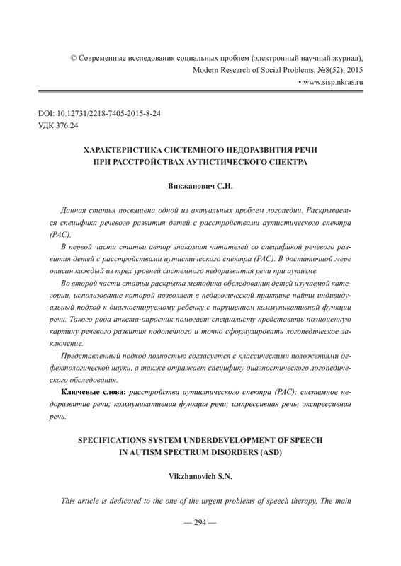 Викжанович С.Н. Характеристика Системного Недоразвития Речи При Рас